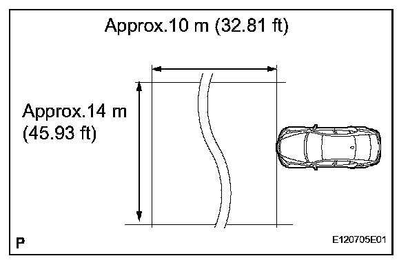 - Make sure that no large pieces of metal are within a 10 m (32.81 ft) x 14 m (45.93 ft) area in front of the vehicle. If possible, the surrounding area should also be free of large metal objects.