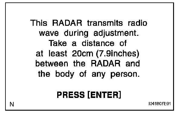 - When the ECM transfers to BEAM AXIS ADJUST MODE, the buzzer sounds for 1 second.