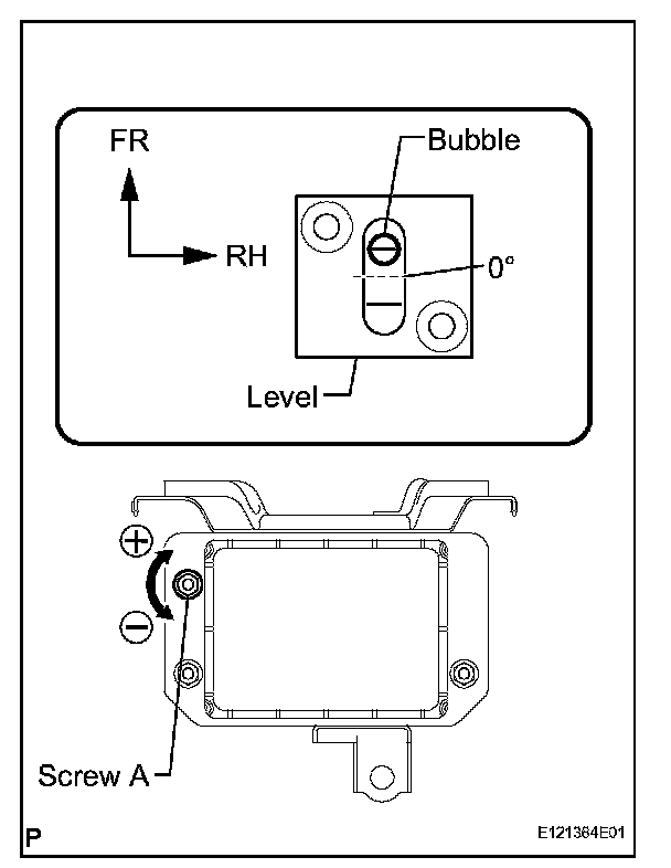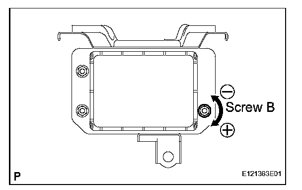 If the axis is not as specified, use a hexagon wrench to adjust screw B until the divergence of the radar beam axis is 0 °.