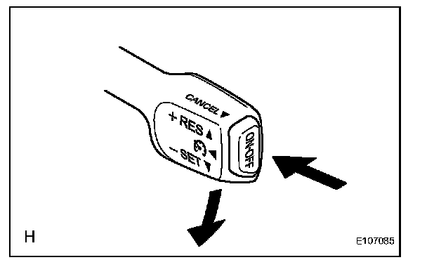 5. Push the cruise control main switch to - (COAST)/SET, and then release it immediately. Check that vehicle speed decreases by approximately 1.6 km/h (1.0 mph) (tap-down control).