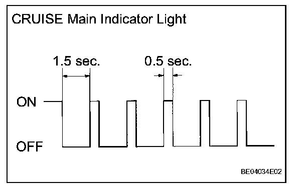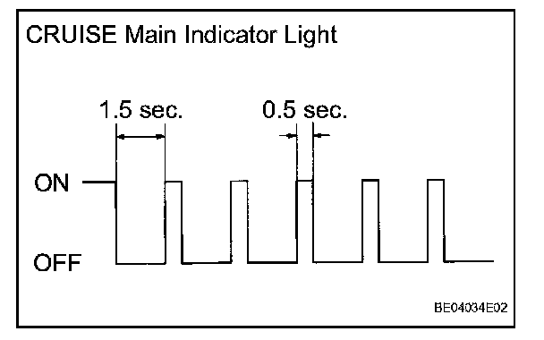 - If a malfunction occurs in the vehicle speed sensors, the stop light switch, or other related parts during cruise control driving, the ECU actuates AUTO CANCEL of the cruise control and blinks the CRUISE main indicator light. This indicator light informs the driver of the malfunction. At the same time, the malfunction is stored as a diagnostic trouble code.