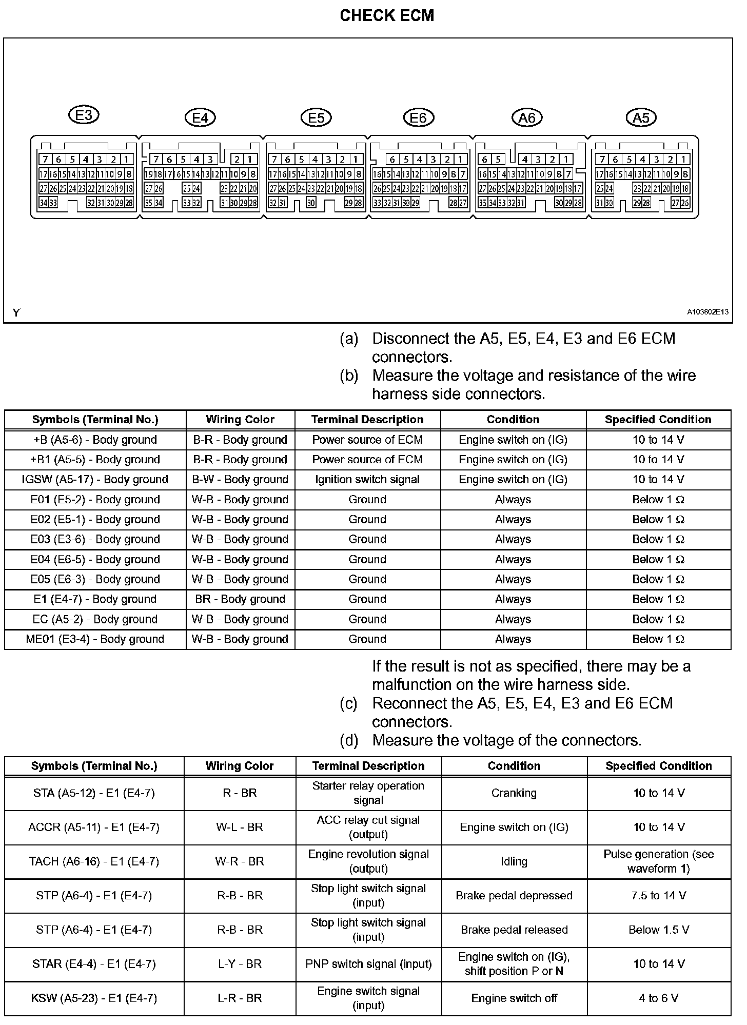 Terminals Of Control Module/Pinouts - Check ECM (Part 1):