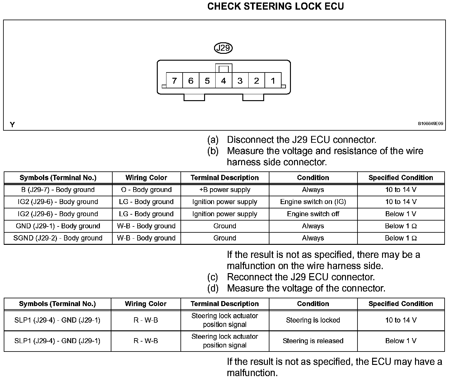 Terminals Of Control Module/Pinouts - Check Steering Lock ECU: