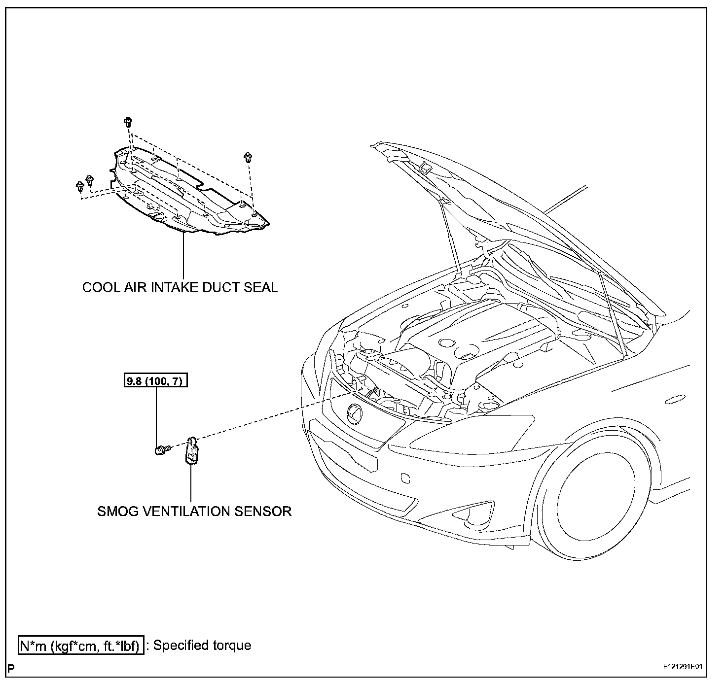 Torque: 9.8 N.m (100 kgf.cm, 7 ft.lbf)
