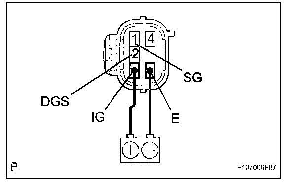1. Apply battery voltage between terminals 3 (IG) and 6 (E).