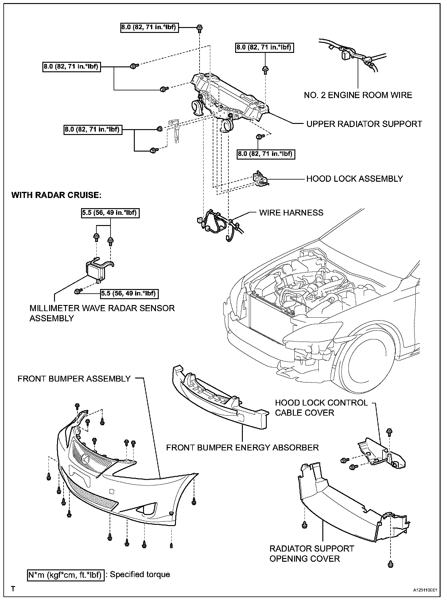 Torque: 5.0 N.m (51 kgf.cm, 44 in.lbf)