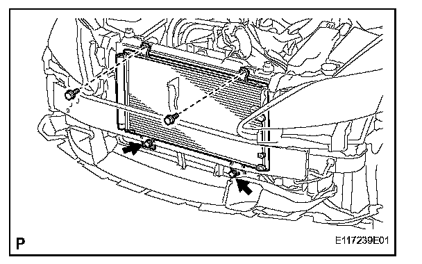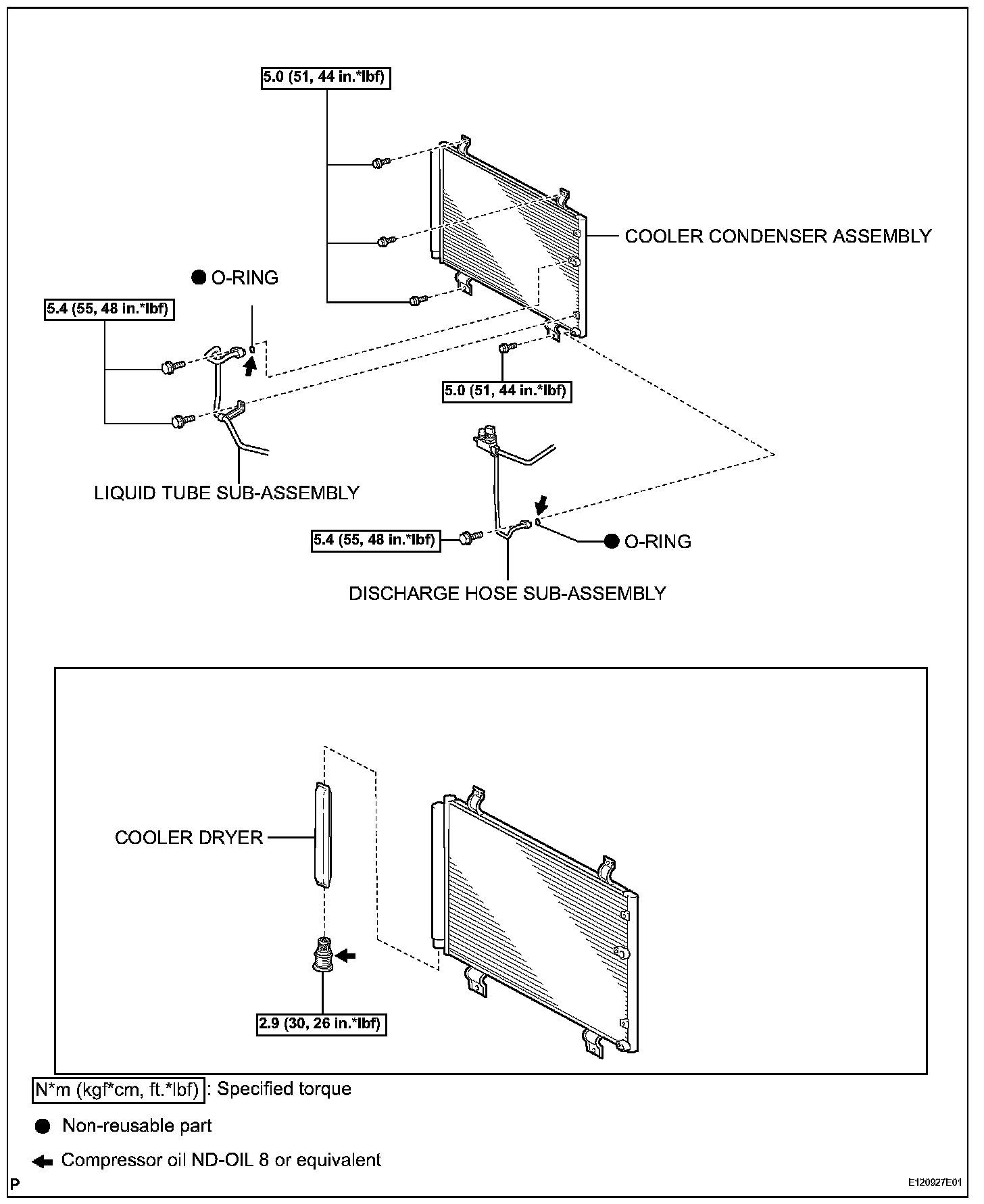 HINT: If the condenser is replaced with a new one, add compressor oil to the new condenser.