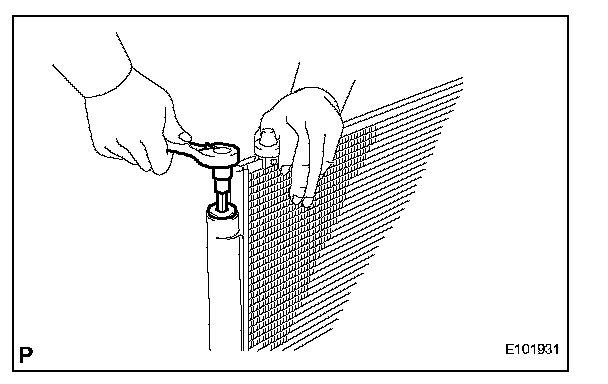 c. Using a straight hexagon wrench 14 mm, install the cap to the cooler condenser core.