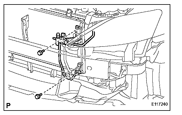 a. Remove the 2 bolts and disconnect the liquid tube sub-assembly from the cooler condenser assembly.