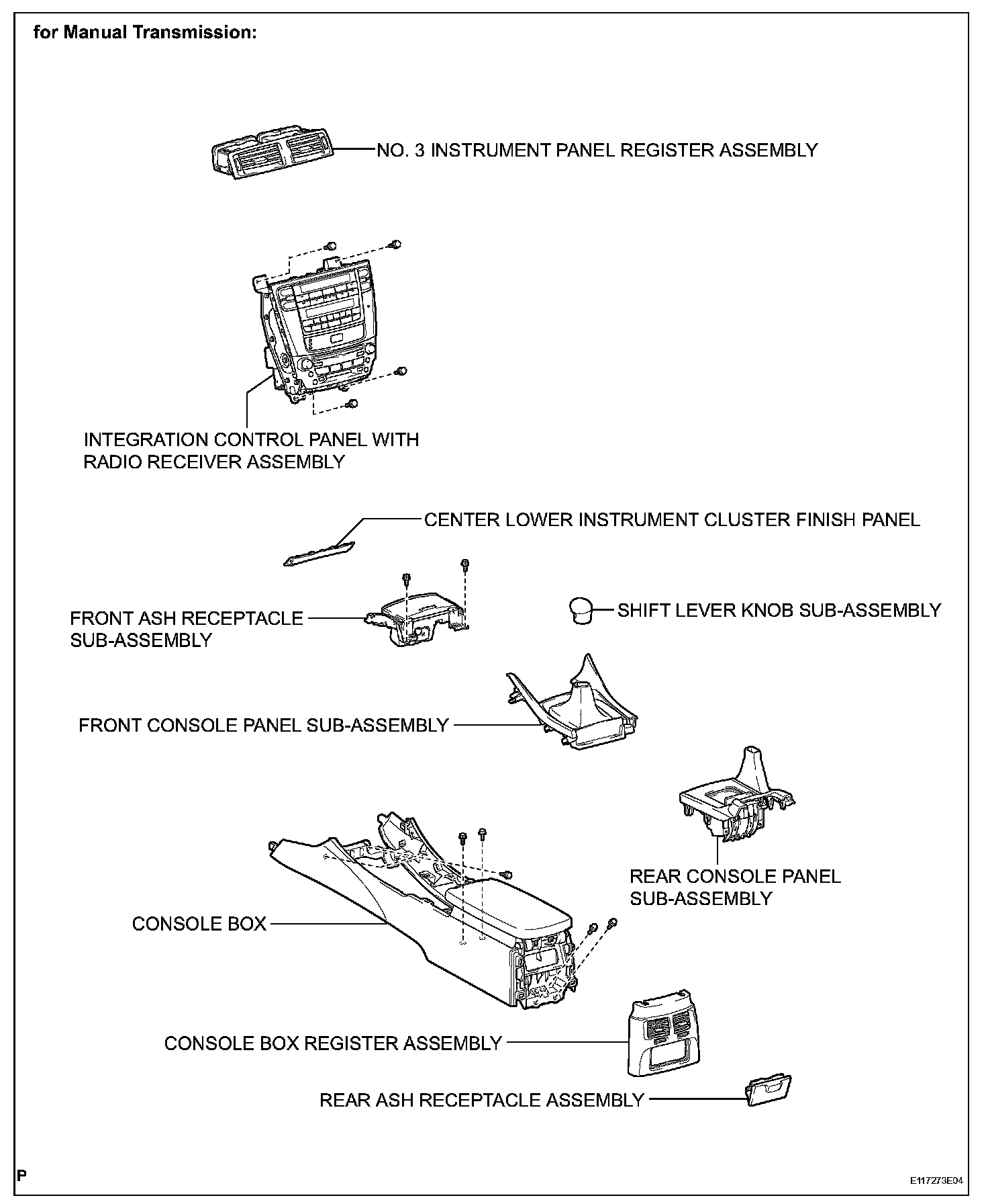 7. REMOVE FRONT CONSOLE PANEL SUB-ASSEMBLY (for Manual Transmission)