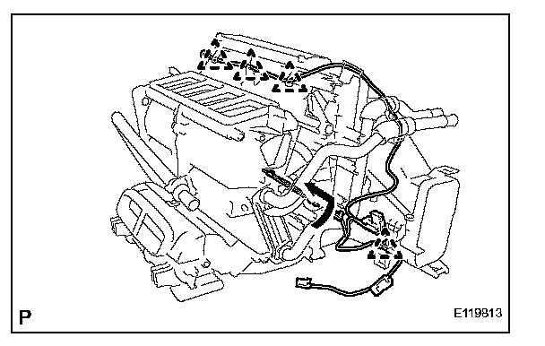 b. Remove the air conditioning harness assembly as shown in the illustration.