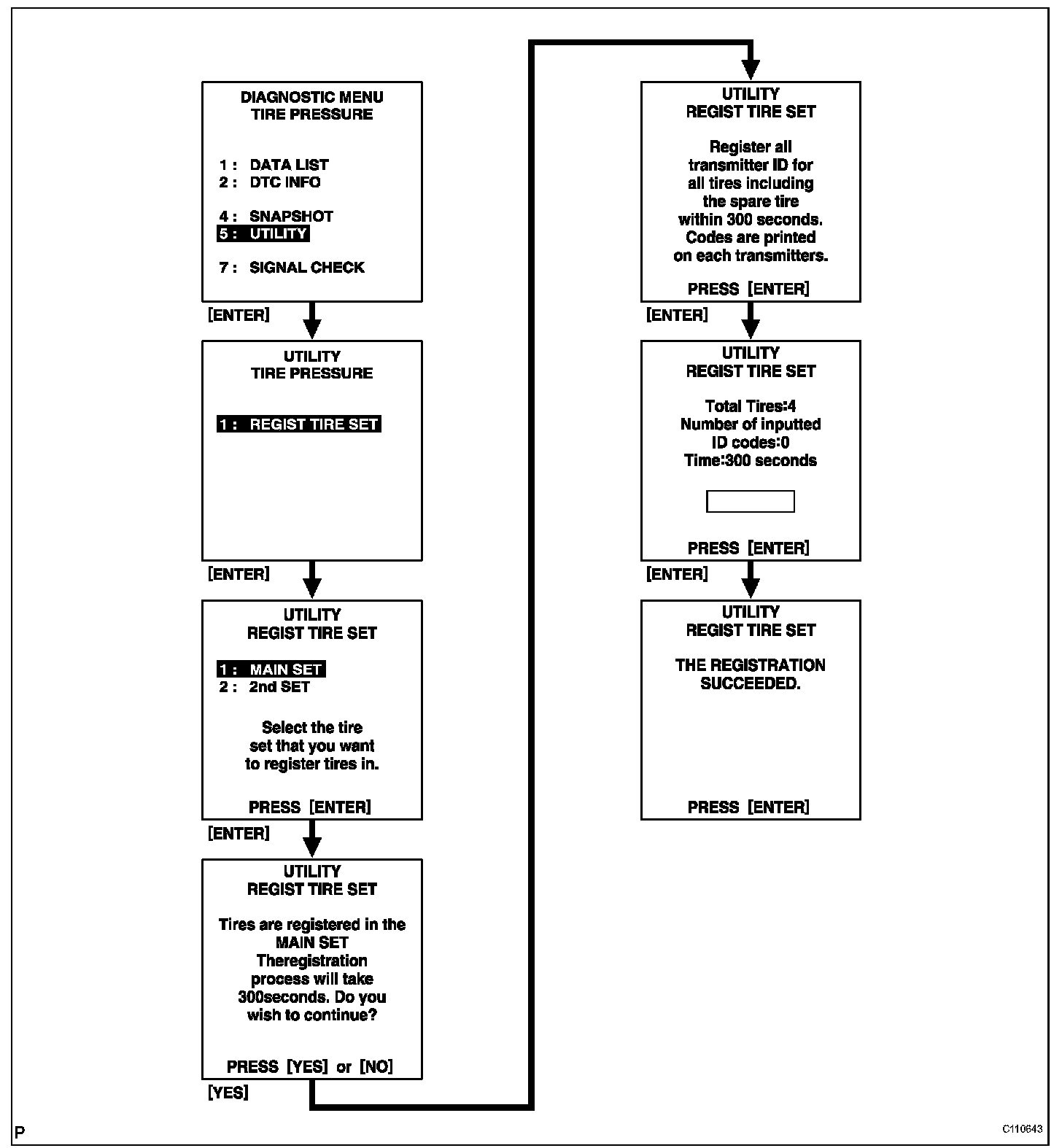 (e) Select the REGIST TIRE following the intelligent tester screen (UTILITY - REGIST TIRE) (Procedure "E").