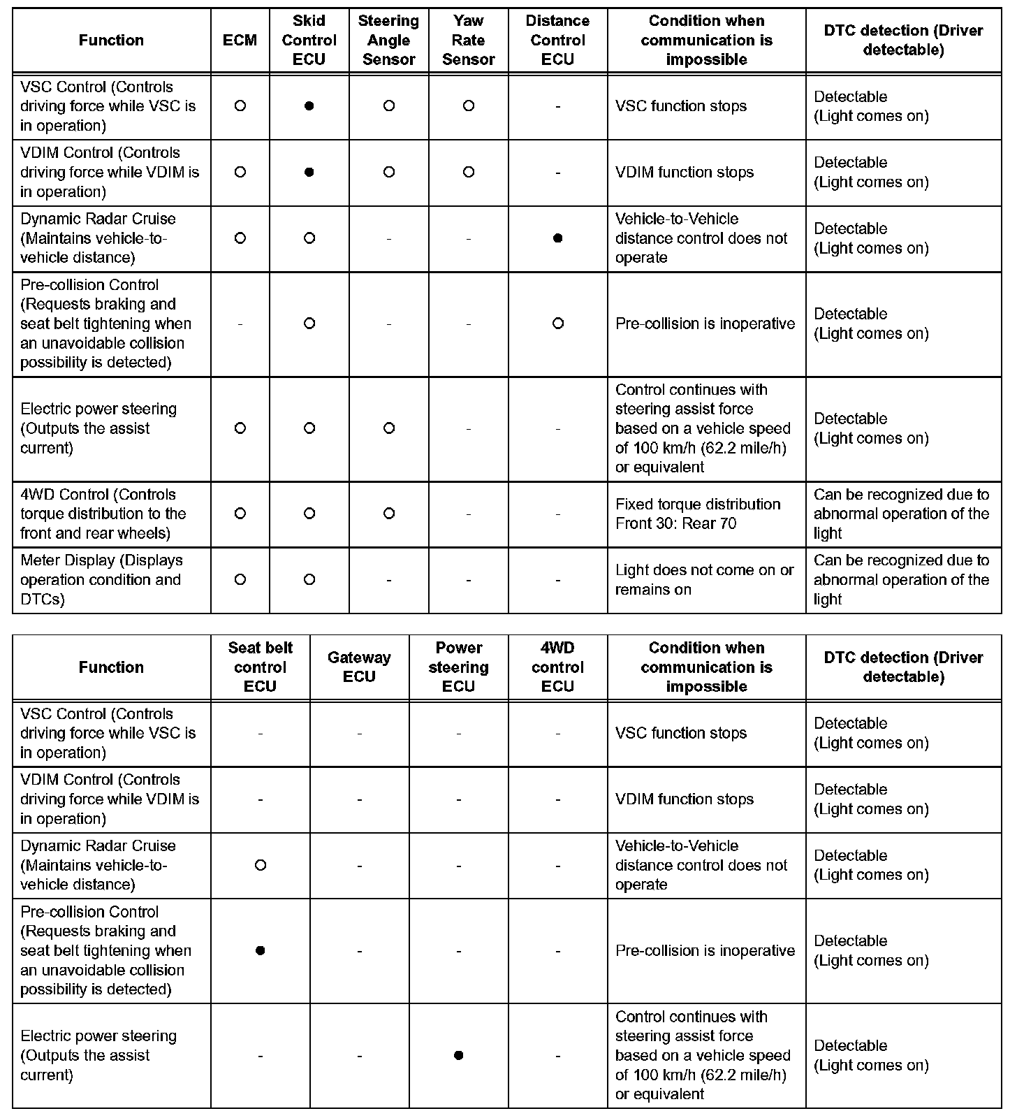 b. Effects on each system when communication is impossible. (For further details, see the images for each system.)