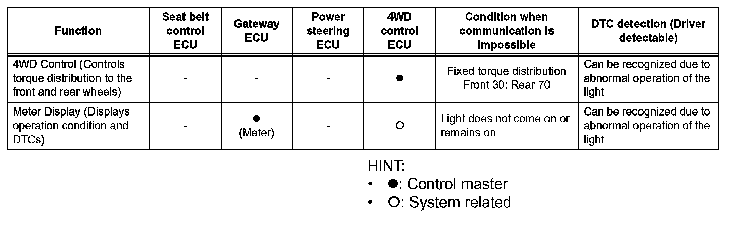 a. When communication fails in any of the CAN bus lines (communication lines), a fail-safe function(s) will operate. The fail-safe function that is specified for each system operates to prevent those systems from malfunctioning.