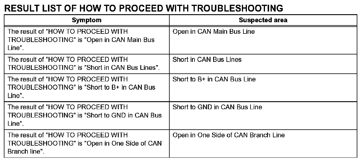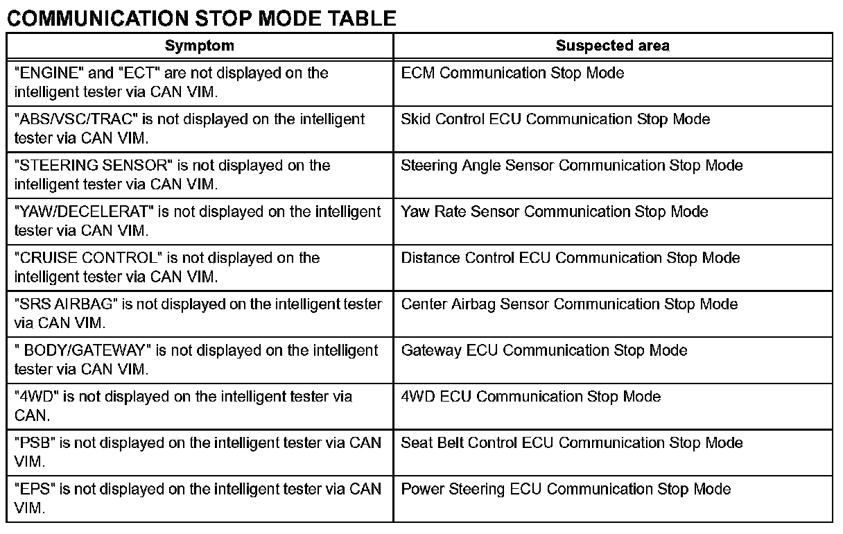 Problem Symptoms Table - Communication Stop Mode Table: