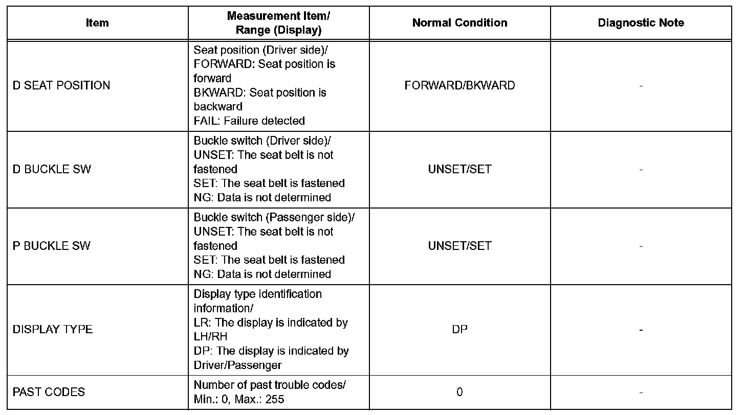 1. DATA LIST FOR CENTER AIRBAG SENSOR ASSEMBLY