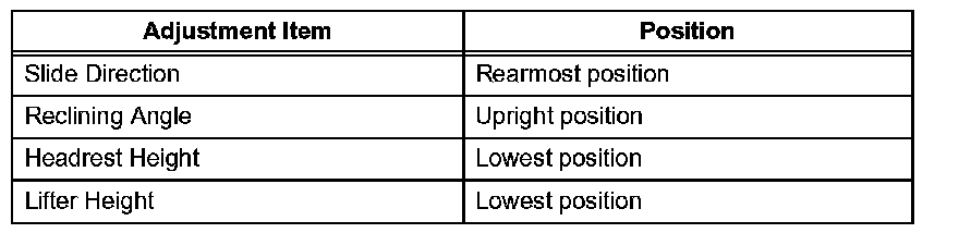 2. Adjust the seat position according to the table given.