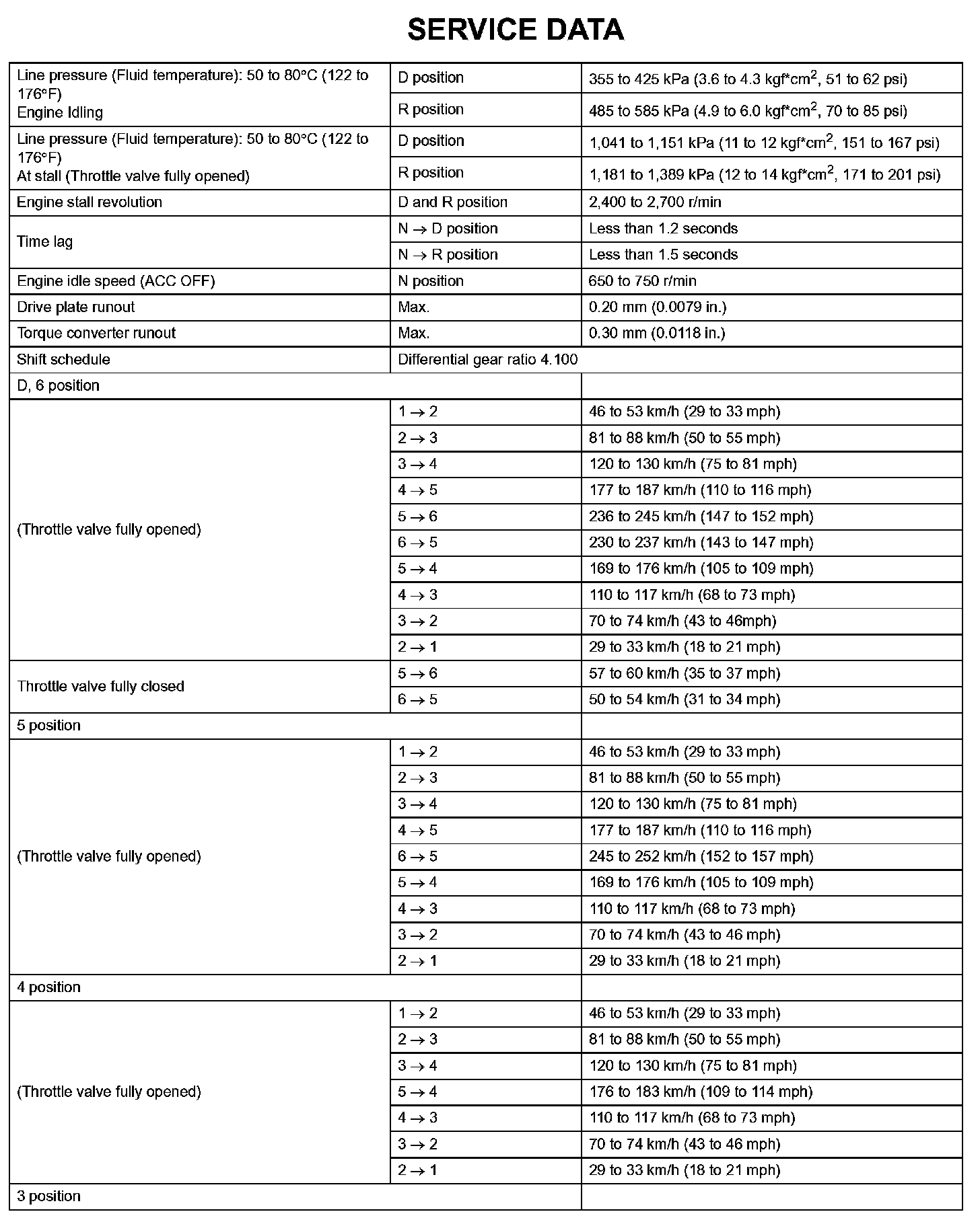 Automatic Transmission - Service Data (Part 4):