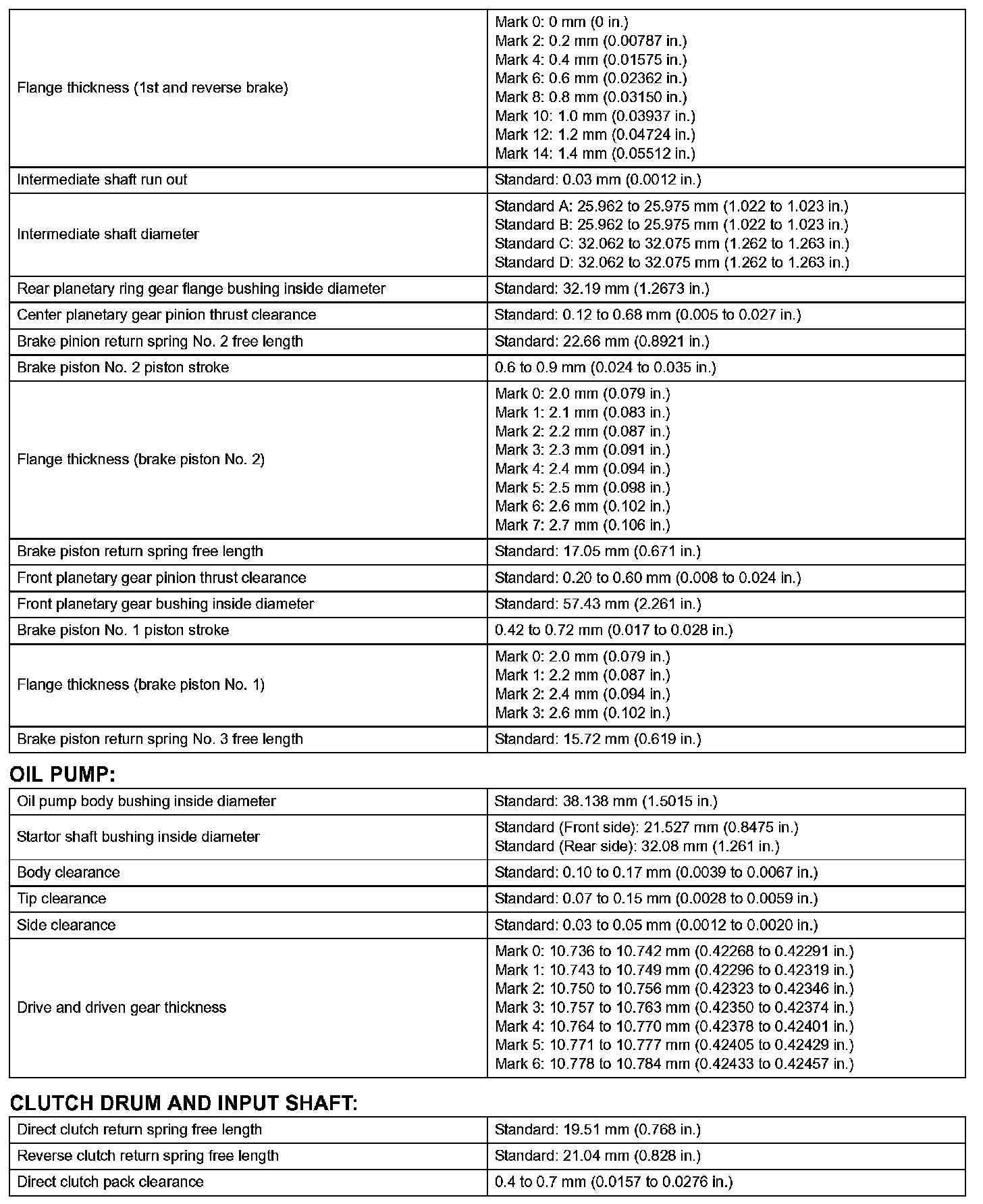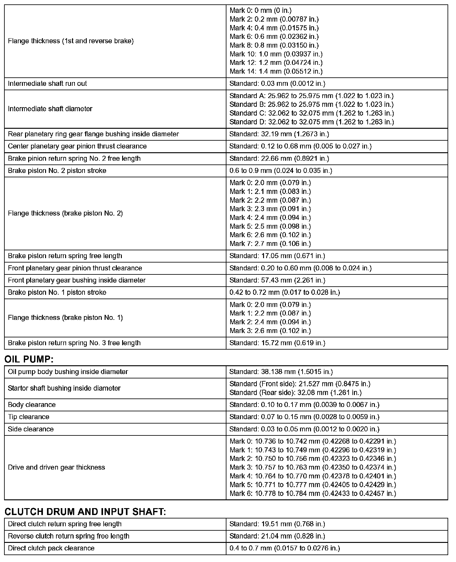 Automatic Transmission - Service Data (Part 2):