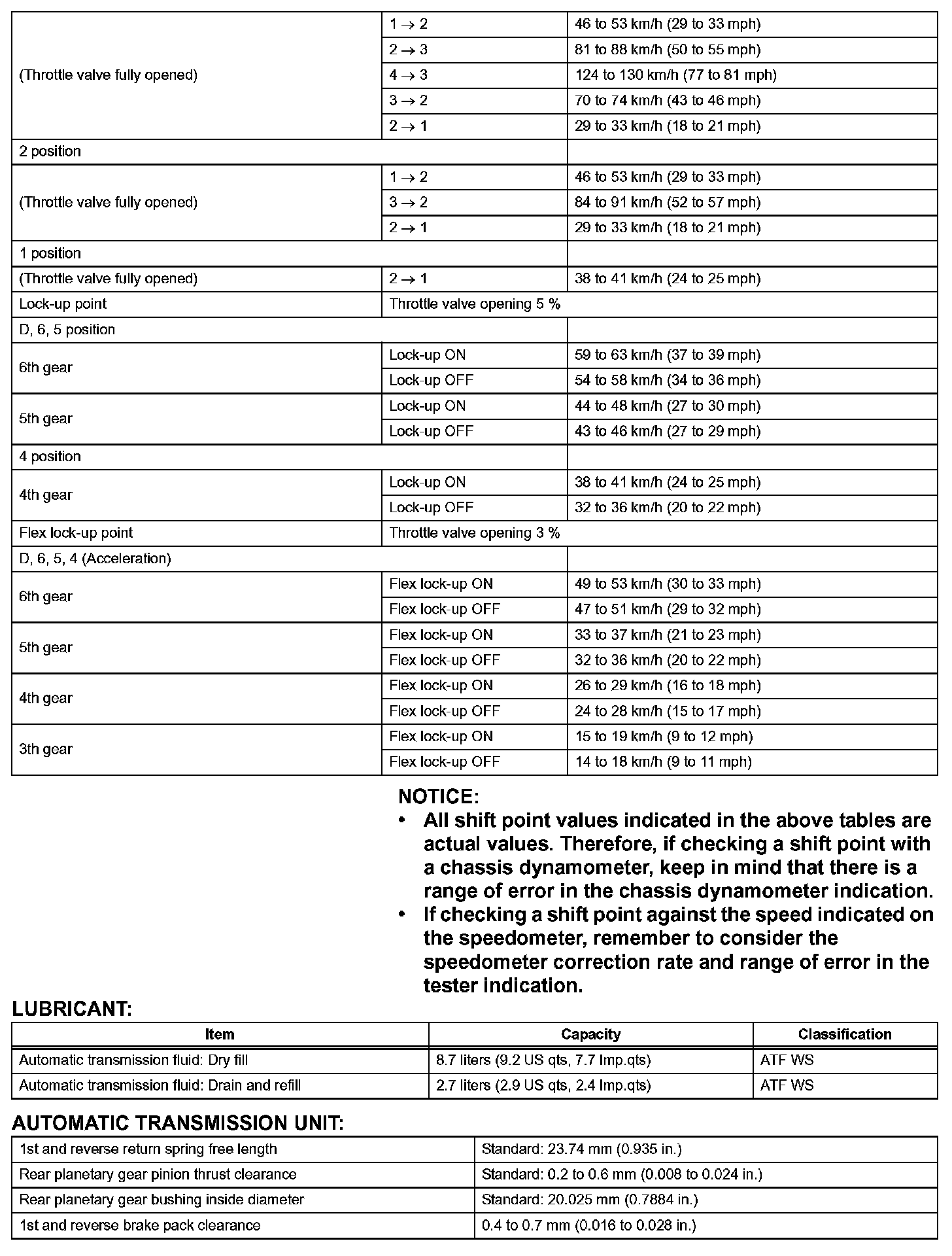 Automatic Transmission-Service Data (Part 2):