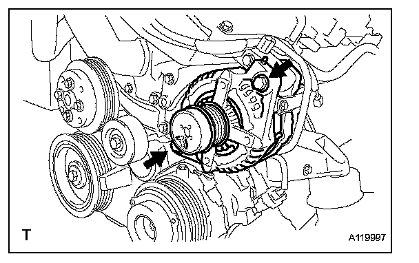 g. Remove the 2 bolts and 2 generator brackets.