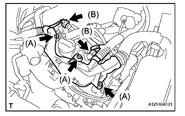 b. Disconnect the 2 connectors (B).
