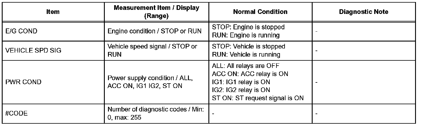 HINT: Using the intelligent tester to read the Data List allows the values or states of switches, sensors, actuators and other items to be read without removing any parts. This non-intrusive inspection can be very useful as intermittent conditions or signals may be discovered before parts or wiring is disturbed. Reading the DATA LIST information early in troubleshooting is one way to save diagnostic time.