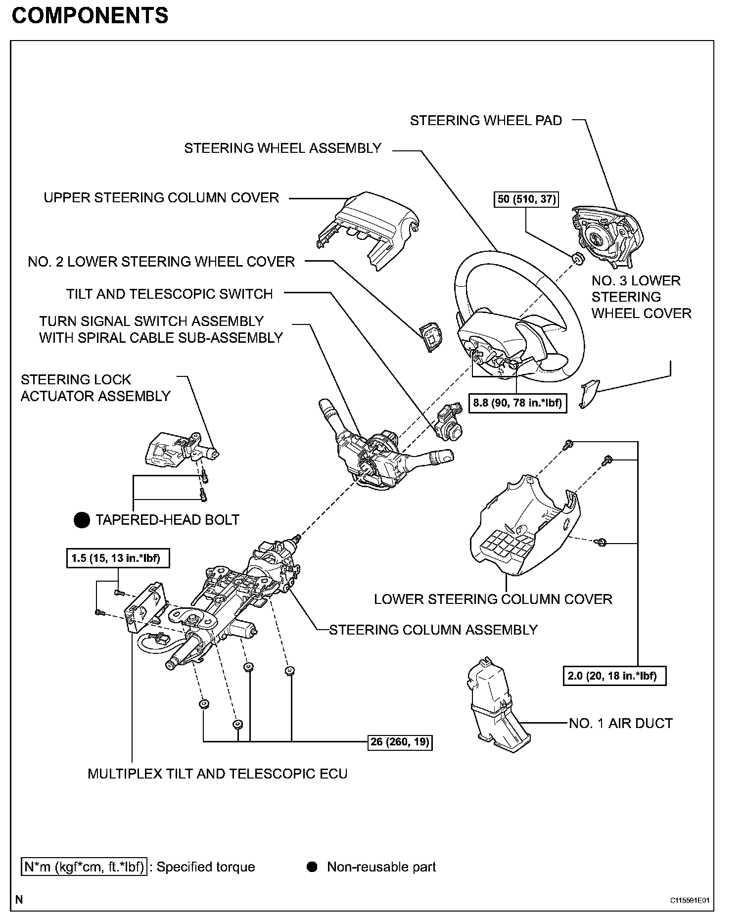 1. REMOVE STEERING COLUMN ASSEMBLY (for Power Tilt and Power Telescopic)