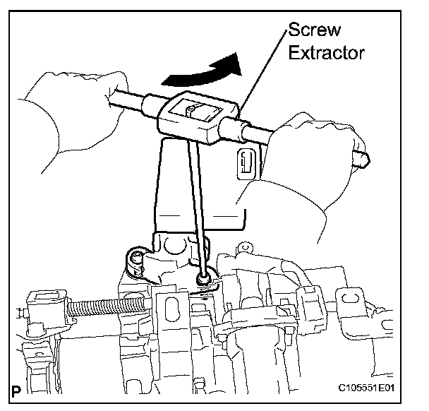 (c) Using a screw extractor, remove the 2 bolts and steering lock actuator assembly from the steering column assembly.
