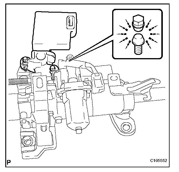 (a) Temporarily install the steering lock actuator assembly with 2 new tapered-head bolts.