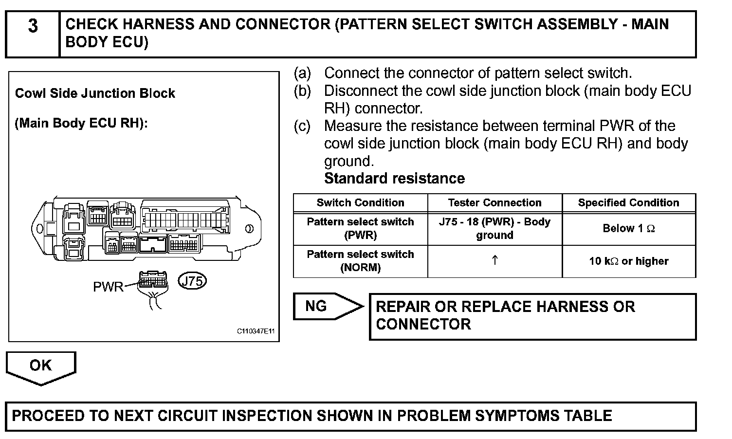 Cowl side J/B ECU receives pattern select switch information, and sends it through the multiplex communication system and CAN system to the ECM.