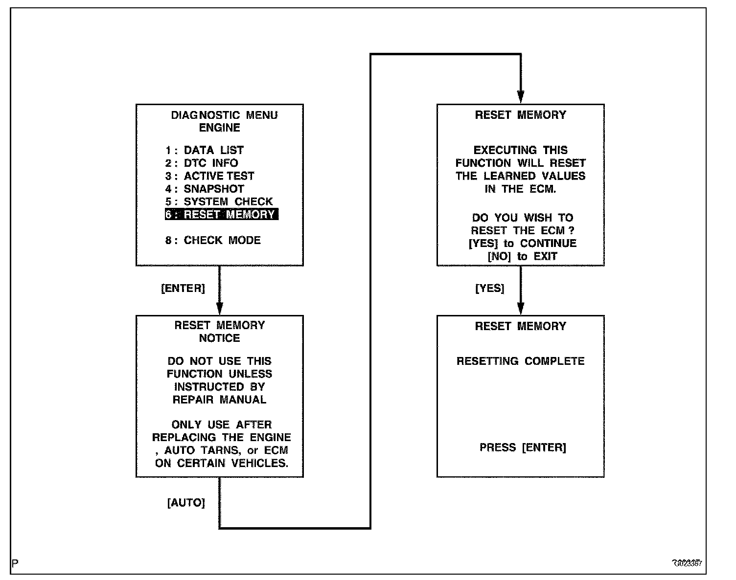 CAUTION: After performing the RESET MEMORY, be sure to perform the ROAD TEST described earlier. Road Test