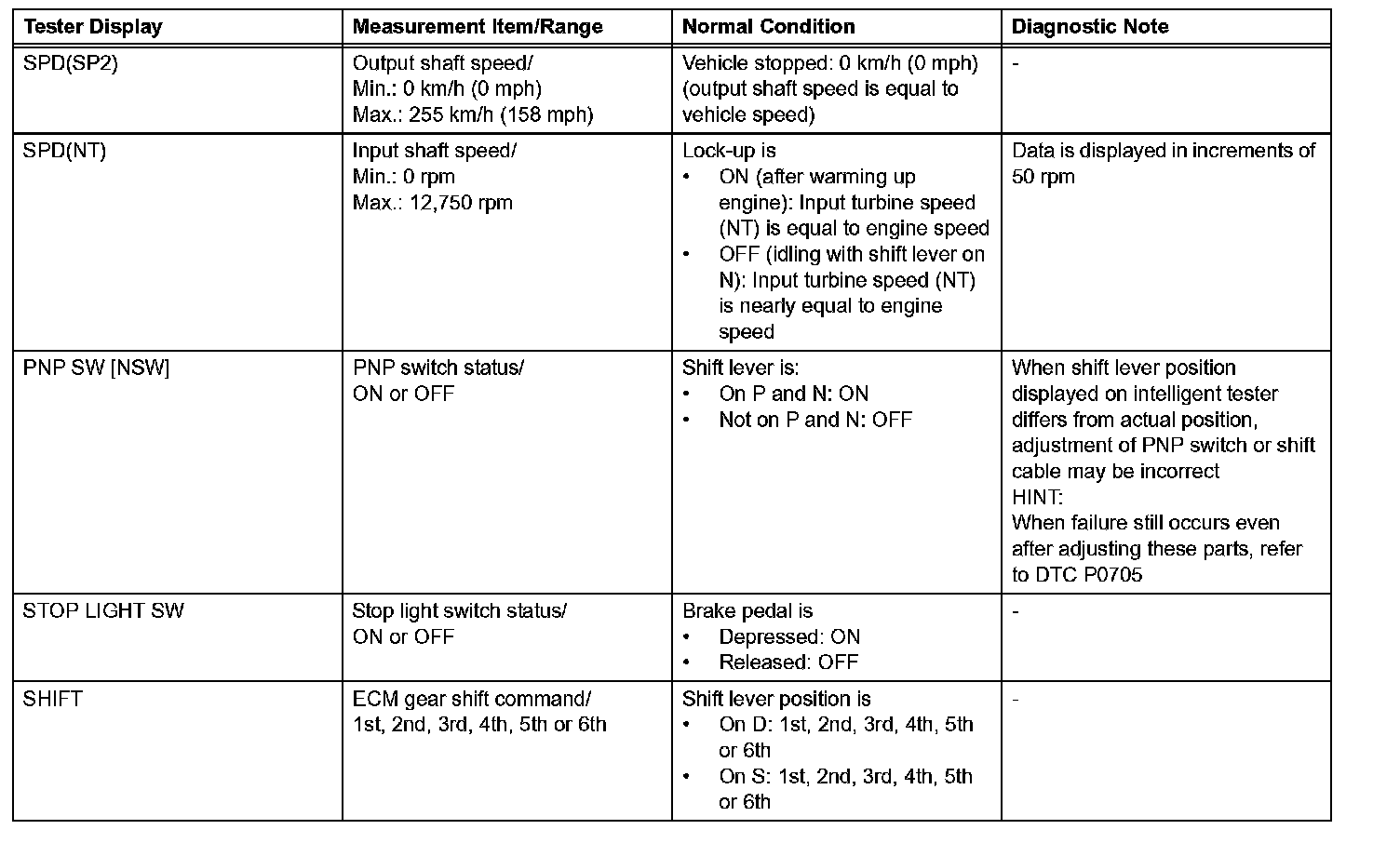 HINT: Using the intelligent tester DATA LIST allows switch, sensor, actuator and other item values to be read without removing any parts. Reading the Data List early in troubleshooting is one way to shorten labor time.
