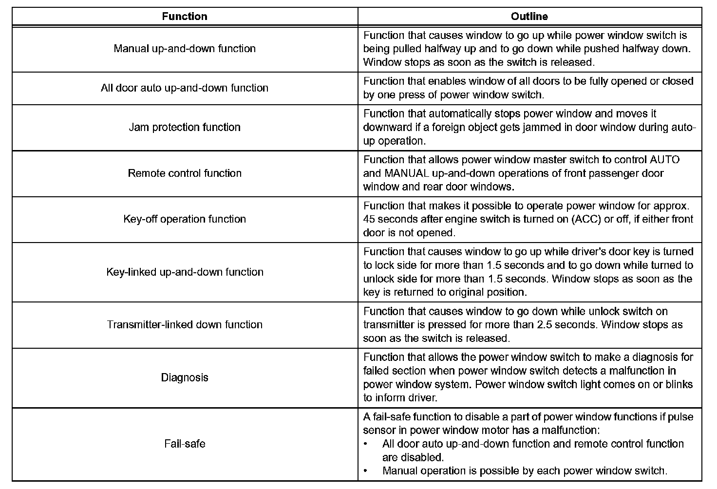b. The power window control system has the following functions: