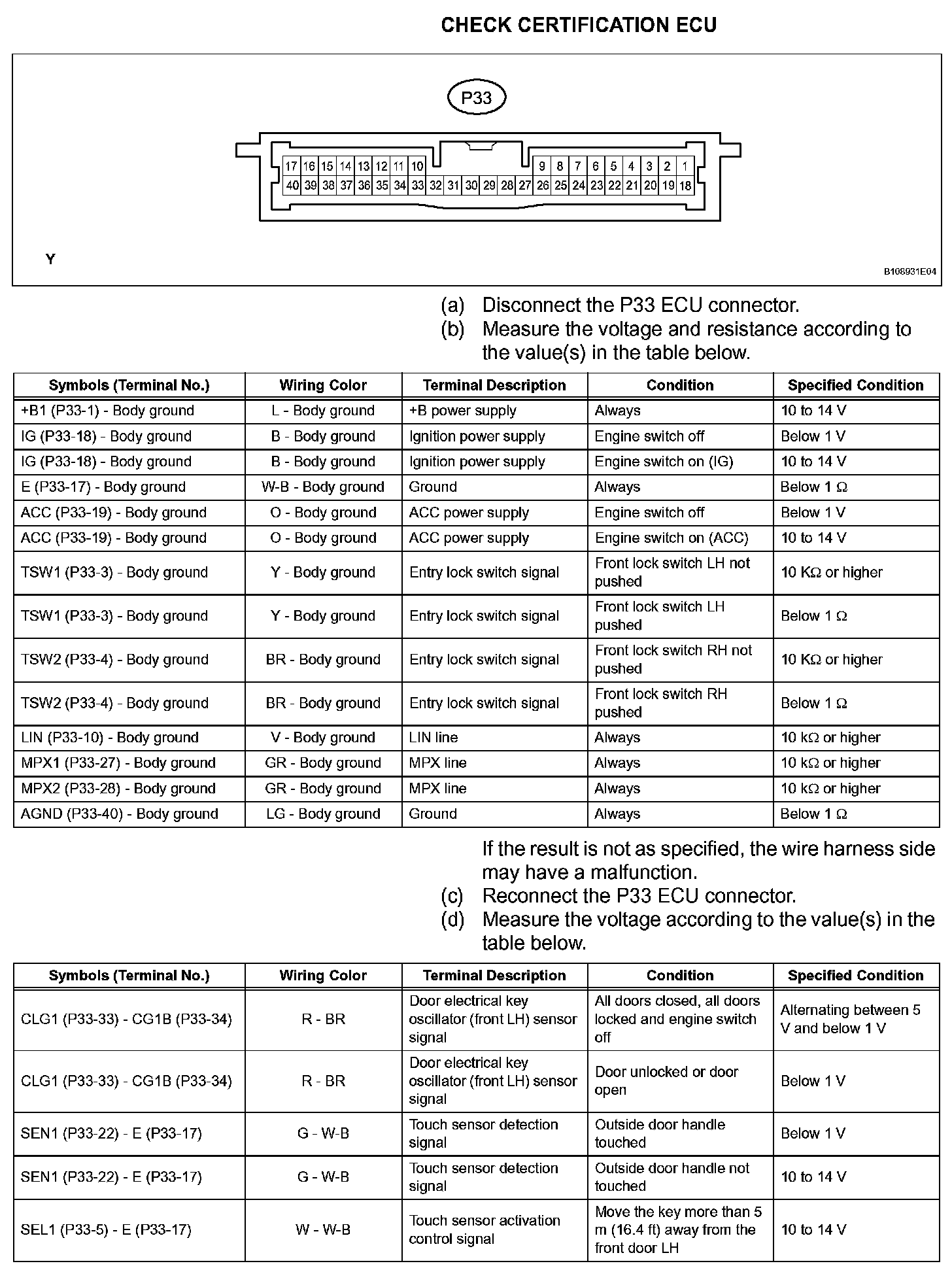 Terminals Of Control Module/Pinouts - Check Certification ECU (Part 2):