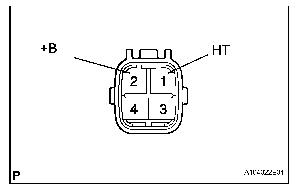 b. Measure the heater resistance between terminals 1 (HT) and 2 (+B) of the sensor.