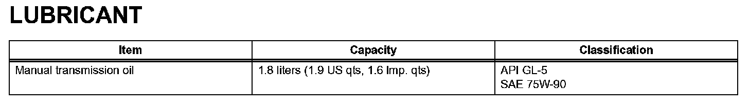 Manual Transmission - Lubricant:
