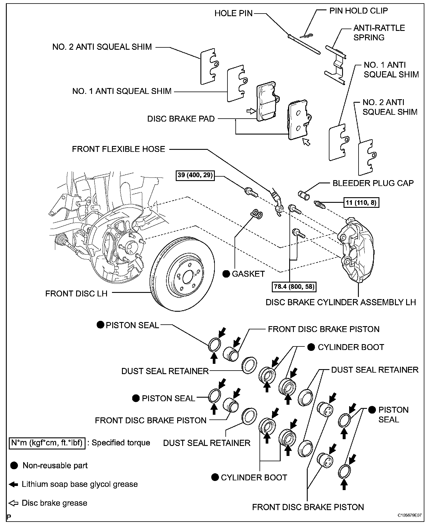 FRONT BRAKE (for 2GR-FSE)COMPONENTS: