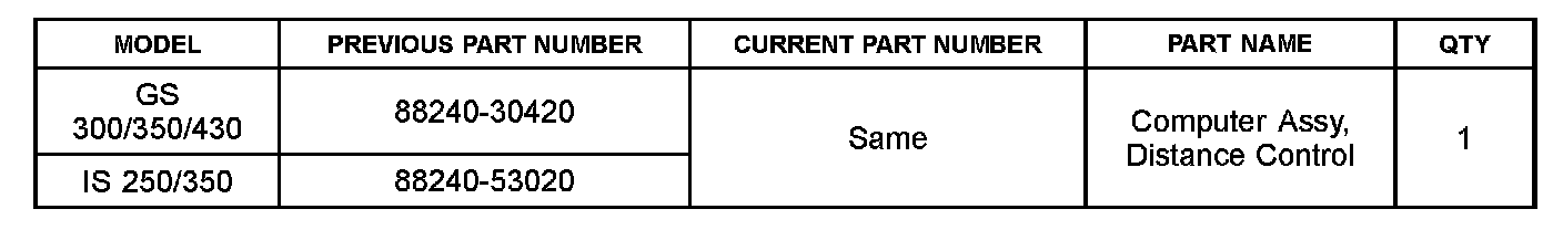 ^ 2006 Model year IS 250,/350, Engine/Hybrid System - Cruise Control - "Cruise Control: Distance Control ECU: Removal".