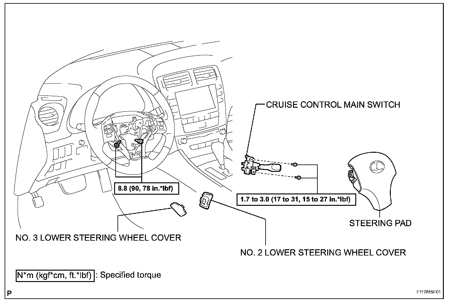Torque: 1.7 to 3.0 N.m (17 to 31 kgf.cm, 15 to 27 in.lbf)