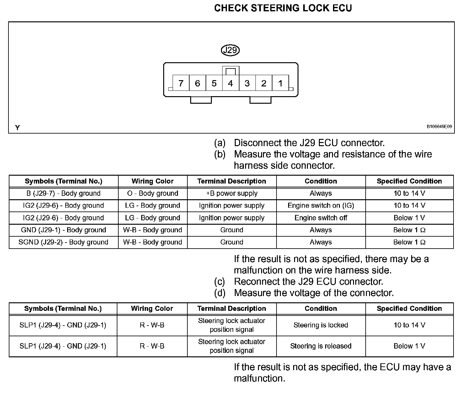 Terminals Of Control Module/Pinouts - Check Steering Lock ECU: