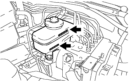 If brake fluid level is lowered, check for leakage and inspect the disc brake pad. If necessary, refill the reservoir with brake fluid after repair and replacement.