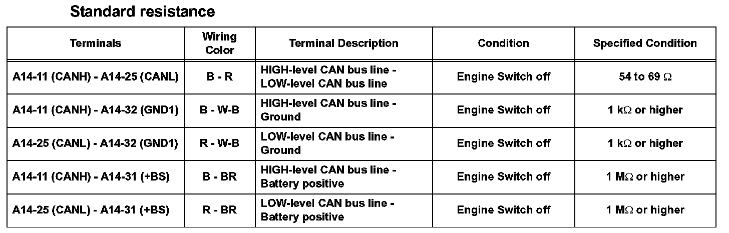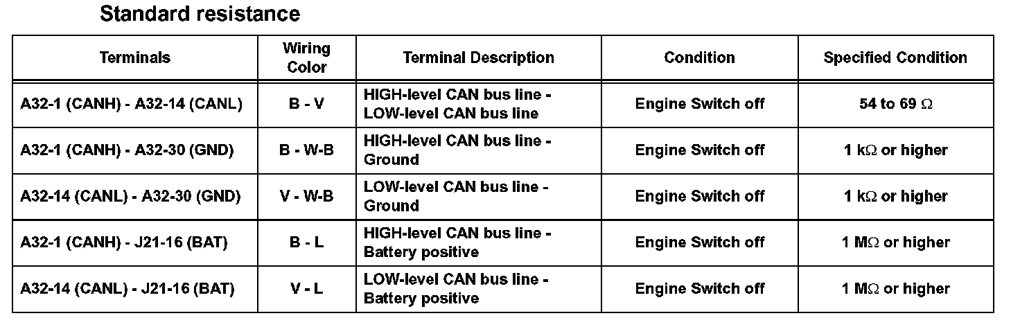 TERMINALS OF ECUHINT: This section describes the standard CAN values for all CAN related components.