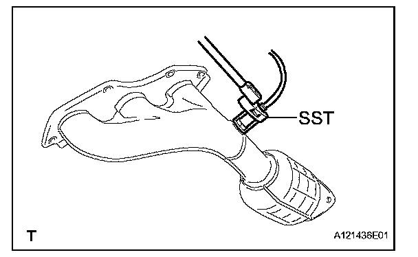 a. Using SST, install the air fuel ratio sensor to the exhaust manifold RH.