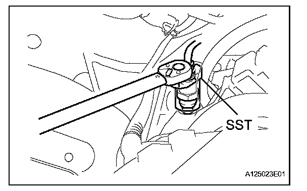 a. Using SST, remove the air fuel ratio sensor from the exhaust manifold LH.