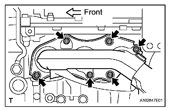 b. Remove the 6 nuts and exhaust manifold subassembly LH.
