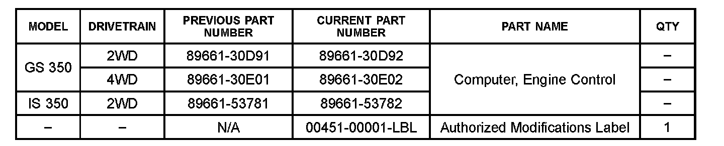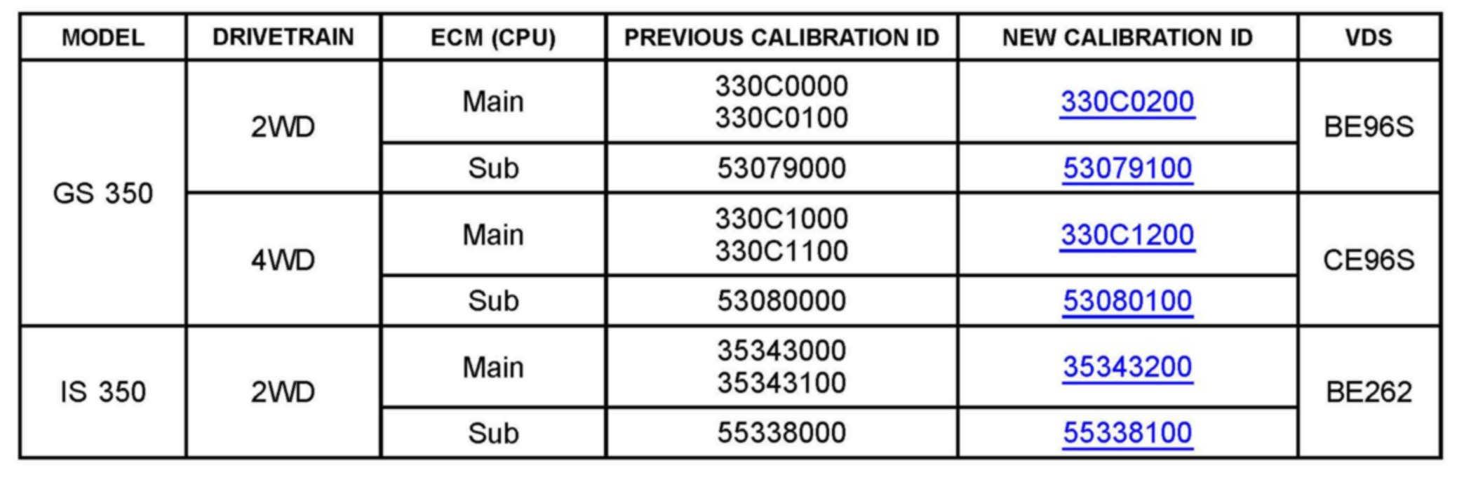 Some customers of 2007 model year GS 350 and IS 350 vehicles may experience a M.I.L. "ON" condition with DTC P0751 (Shift Solenoid "A" Performance - Shift Solenoid 51) stored (possibly with DTCs P2714 or P0894). The Engine Control Module (ECM) (SAE term: Powertrain Control Module/PCM) logic for DTC P0751 has been revised to prevent a false M.I.L. "ON". Follow the repair procedure in this bulletin to determine if recalibration of the ECM (PCM) is required.