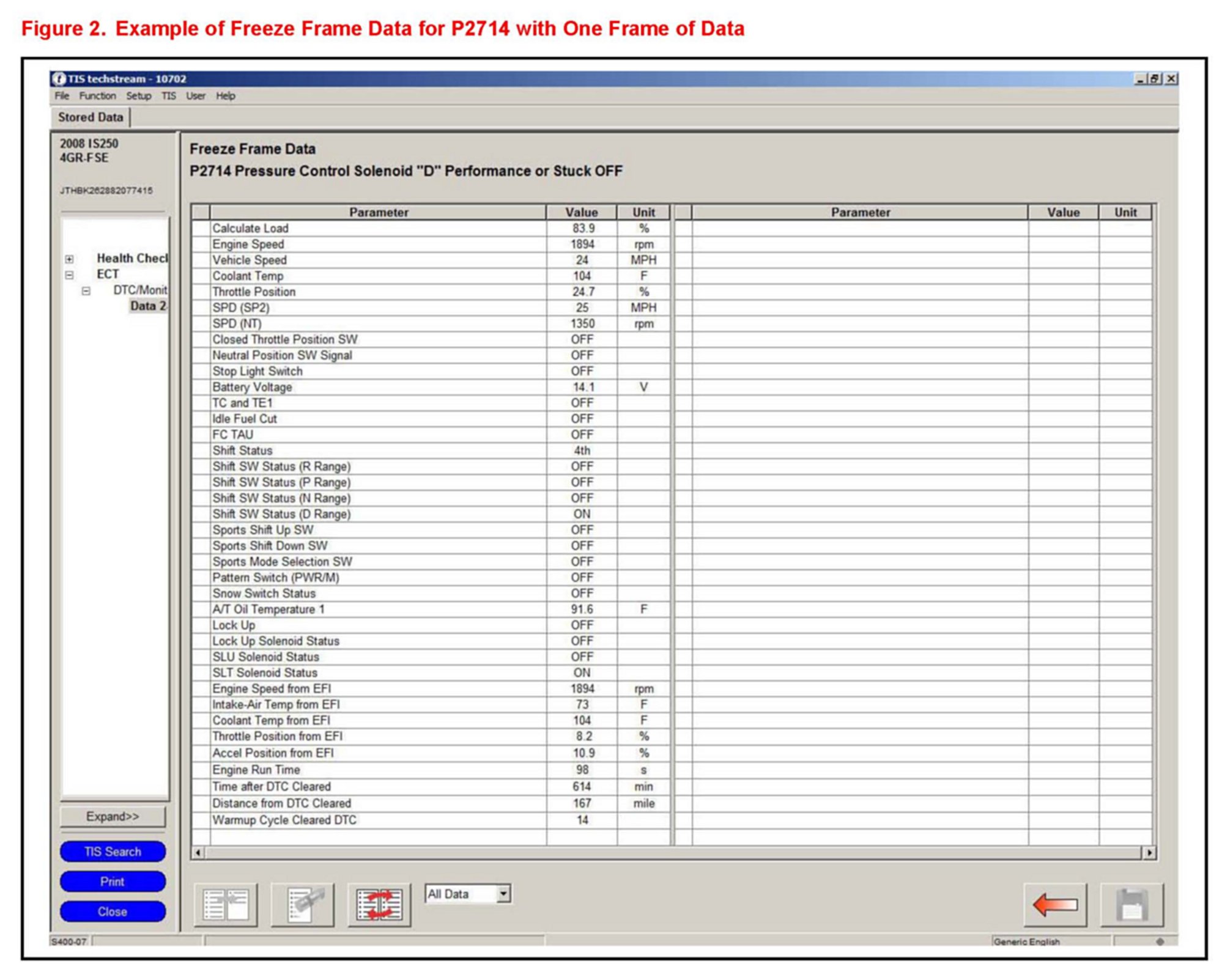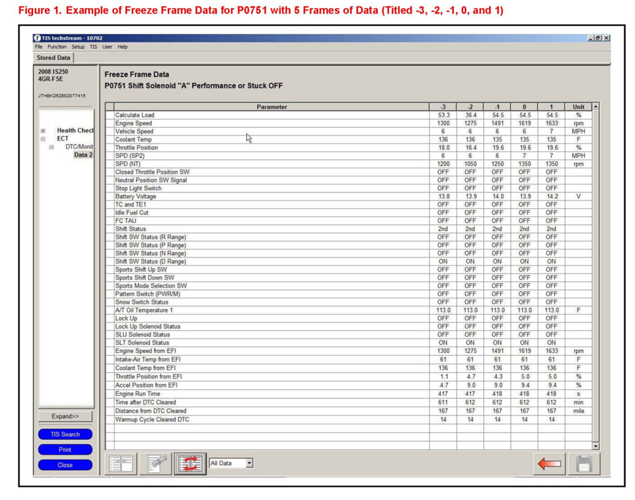 The DTC that is stored first will have 5 frames of Freeze Frame Data stored (see Figures 1 and 2).