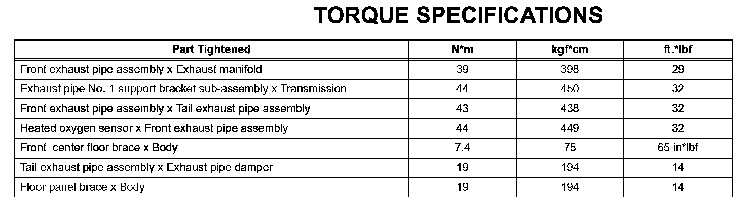 Exhaust - Torque Specifications: