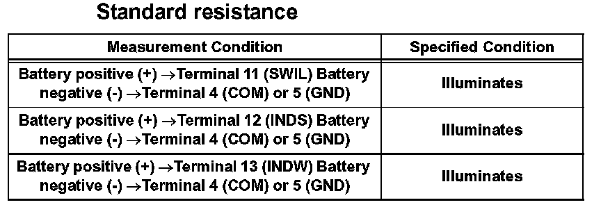 b. Apply battery voltage between the terminals of the switch, and check the illumination condition of the switch.